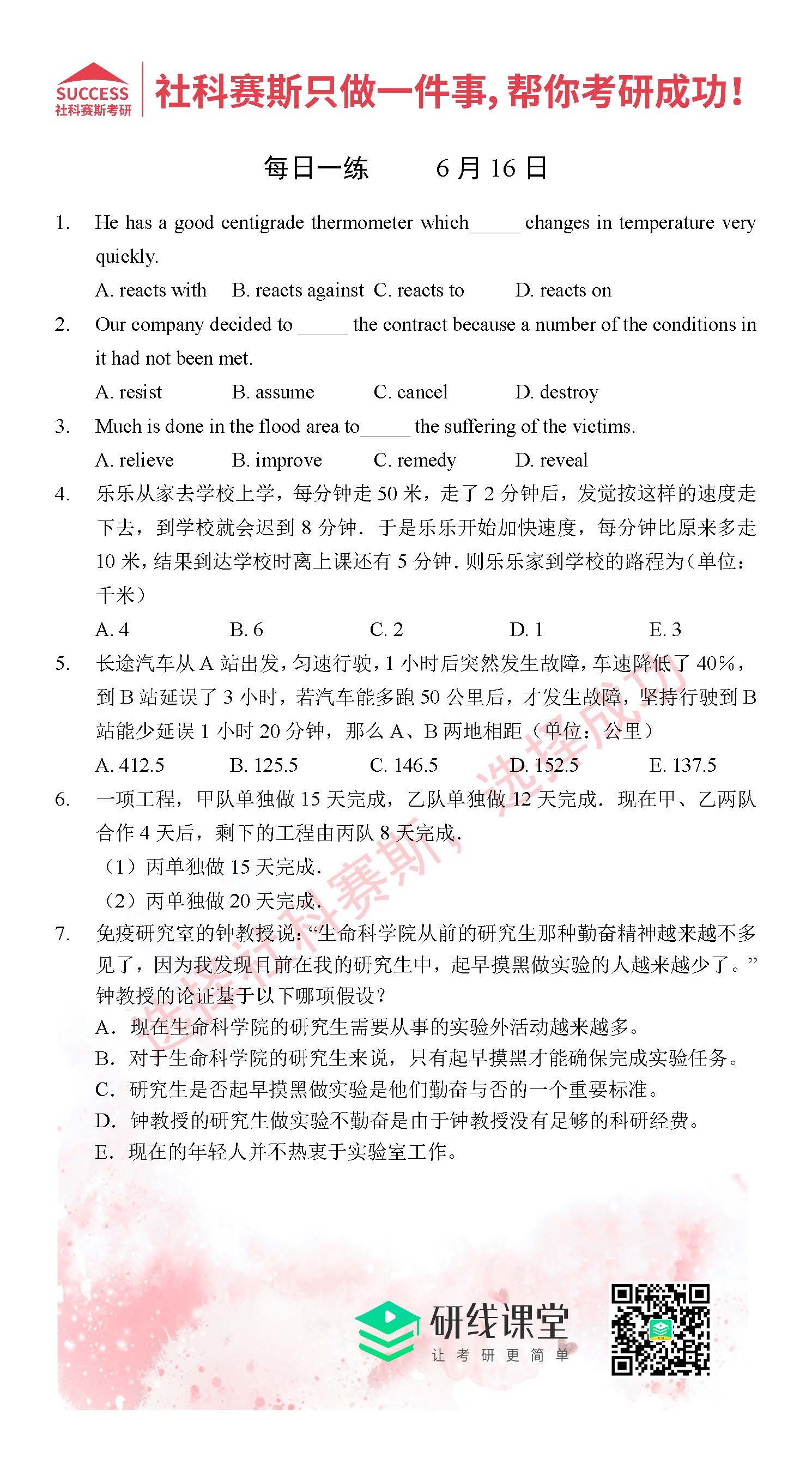 2021MPAcc每日習(xí)題:管理類(lèi)聯(lián)考6月16日精選習(xí)題分享(附答案)