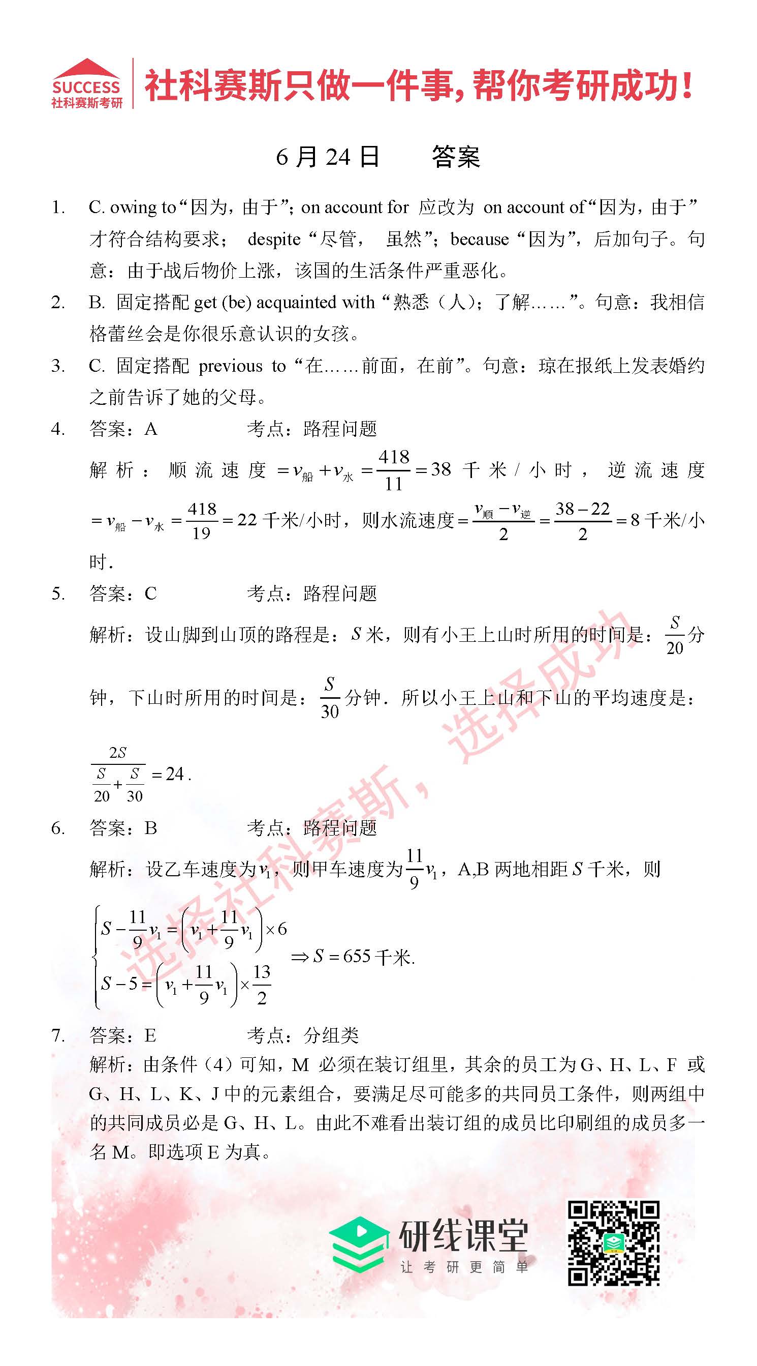 2021MPAcc每日習(xí)題:管理類聯(lián)考6月24日精選習(xí)題分享(附答案)