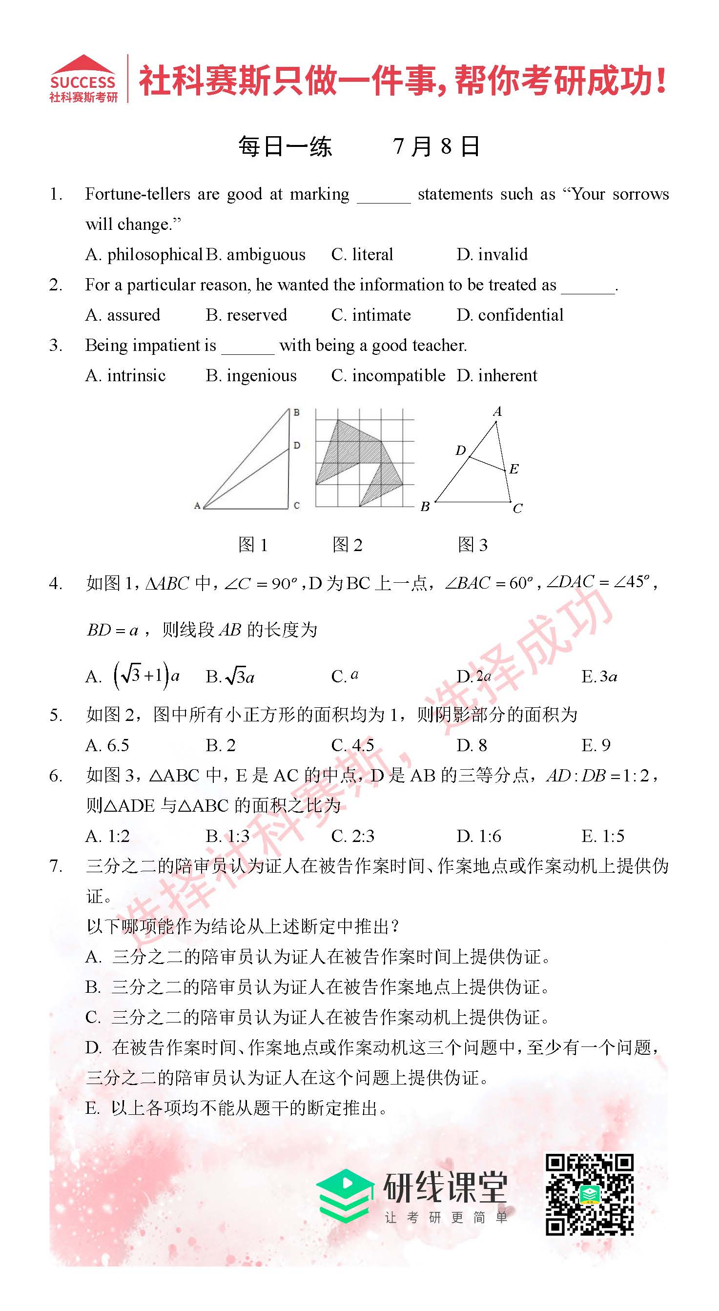 以上就是社科賽斯MPAcc網小編整理“2021MPAcc每日習題:管理類聯考7月8日精選習題分享(附答案)”的全部內容,希望下一個研究生就是你!