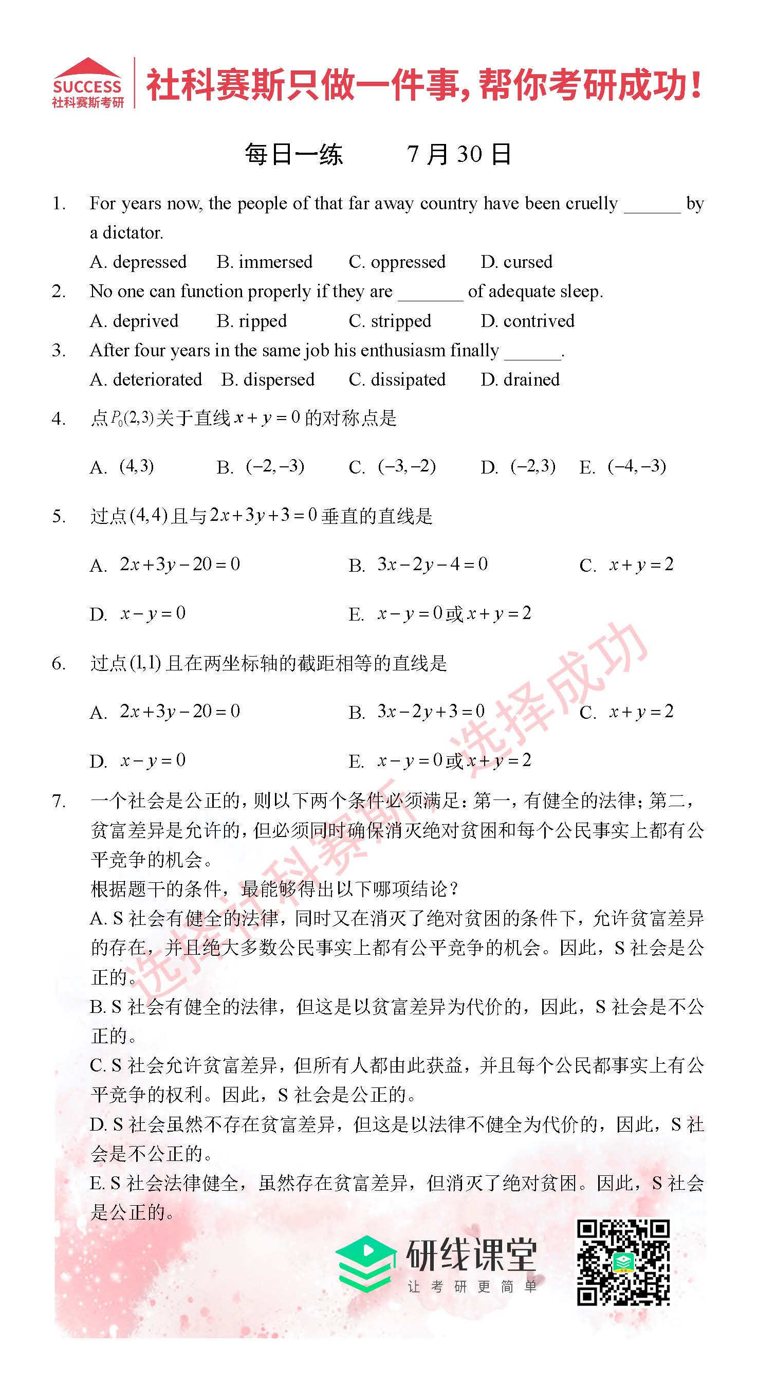 以上就是社科賽斯MPAcc網(wǎng)小編整理“2021MPAcc每日習(xí)題:管理類聯(lián)考7月30日精選習(xí)題分享(附答案)”的全部內(nèi)容,希望下一個(gè)研究生就是你!