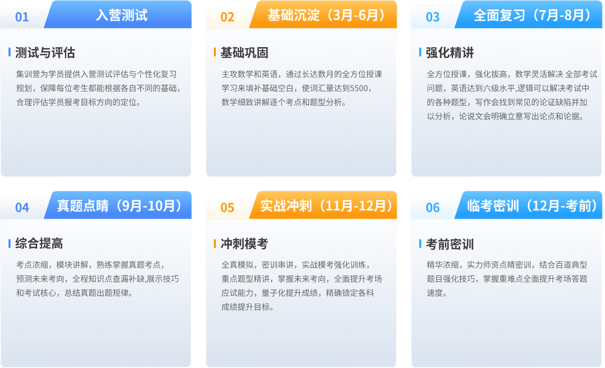 全程規劃,全營課程,專享群,住宿服務 私人服務,資料體系,查缺補漏,職業發展 |