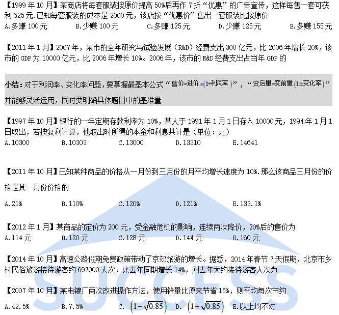 2021MPAcc數(shù)學(xué)備考:利潤(rùn)率問(wèn)題、變化率問(wèn)題