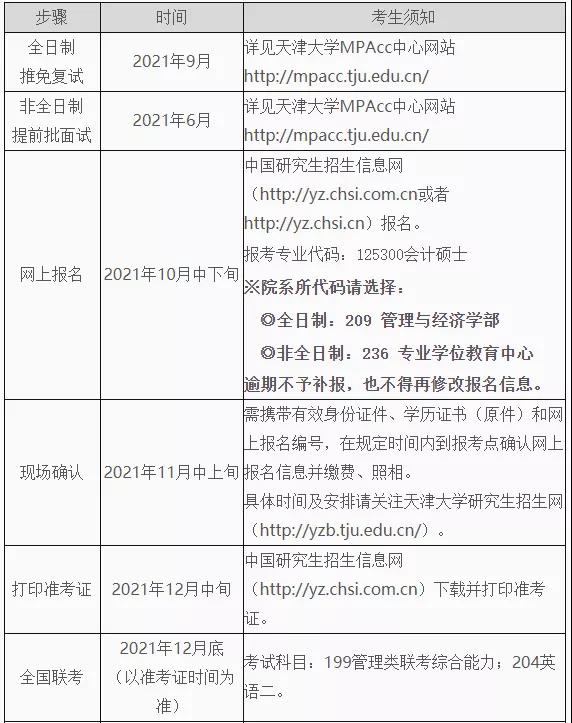 以上就是“2022MPAcc招生簡章:天津大學2022年會計碩士(MPAcc)招生簡章”的內(nèi)容,更多考研信息,請持續(xù)關注本網(wǎng)站。