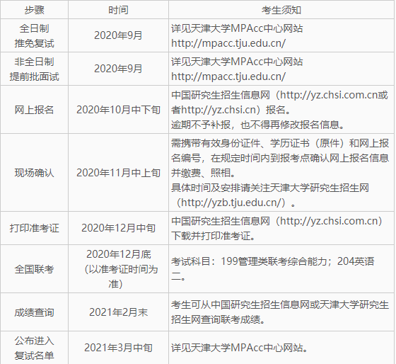 以上就是“2021MPAcc招生簡章:天津大學管理與經濟學部2021年會計碩士(MPAcc)招生簡章”的全部內容!想了解更多信息請持續關注!