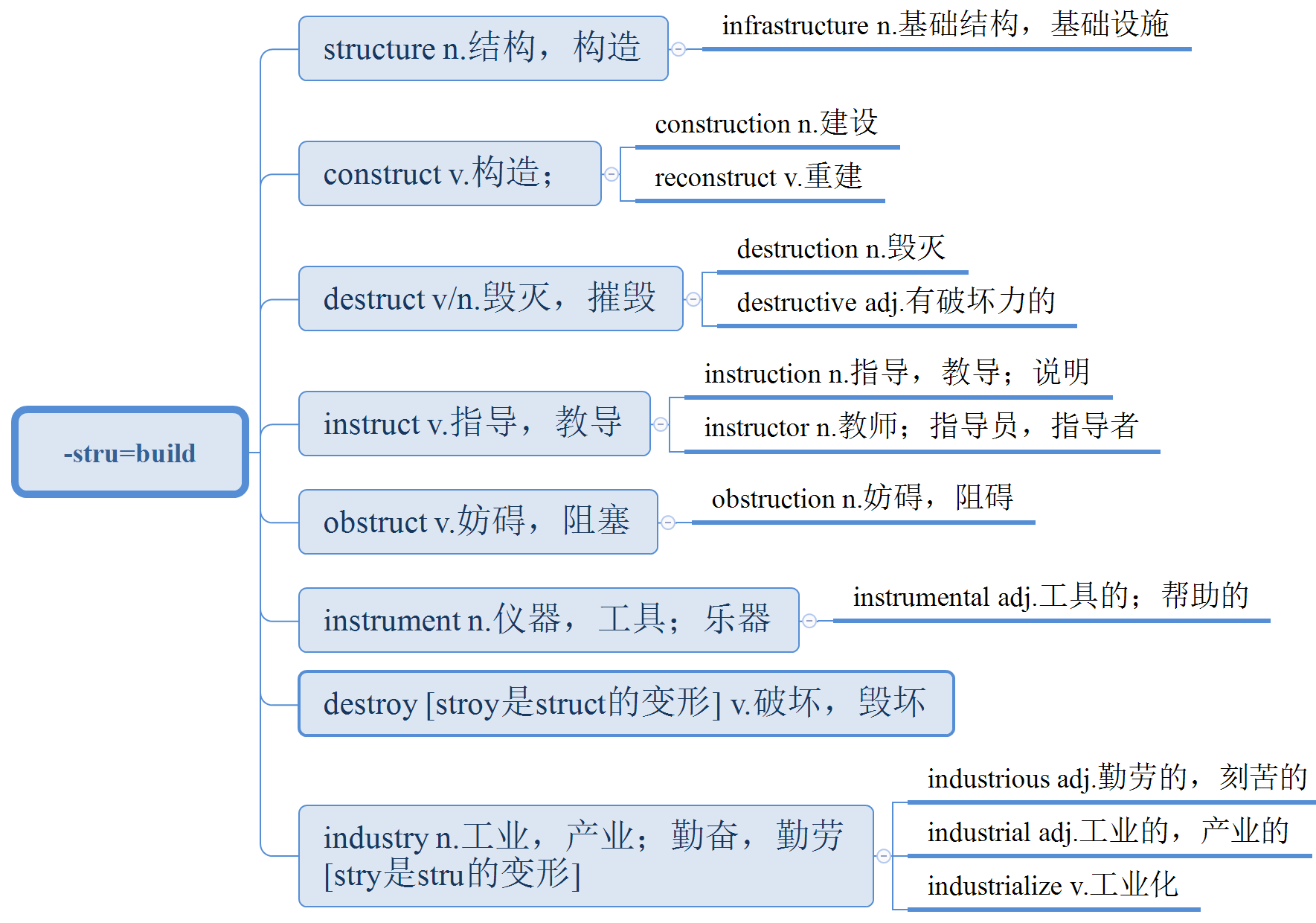 以上就是小編分享“2021MPAcc英語學習 | 科學詞根記憶:-stru=build”的全部內容,希望你們的英語成績能更上一層樓,越來越好。