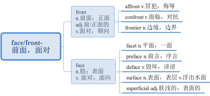 以上就是小編分享“2021MPAcc英語學習 | 科學詞根記憶:face/front-”的全部內容,希望你們的英語成績能更上一層樓,越來越好。
